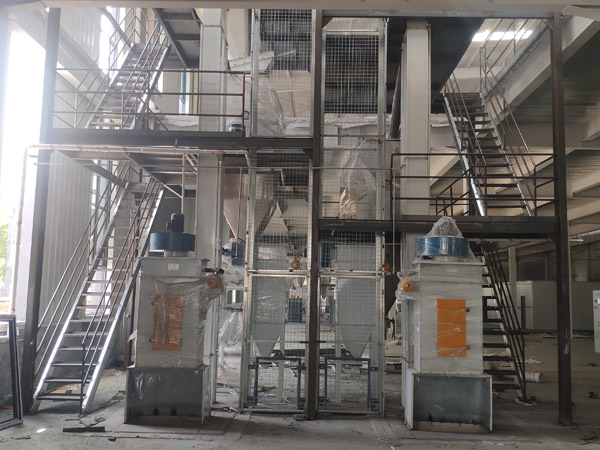 山西運(yùn)城時產(chǎn)5噸鴨飼料成套設(shè)備用戶安裝現(xiàn)場